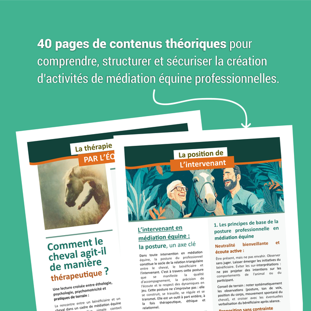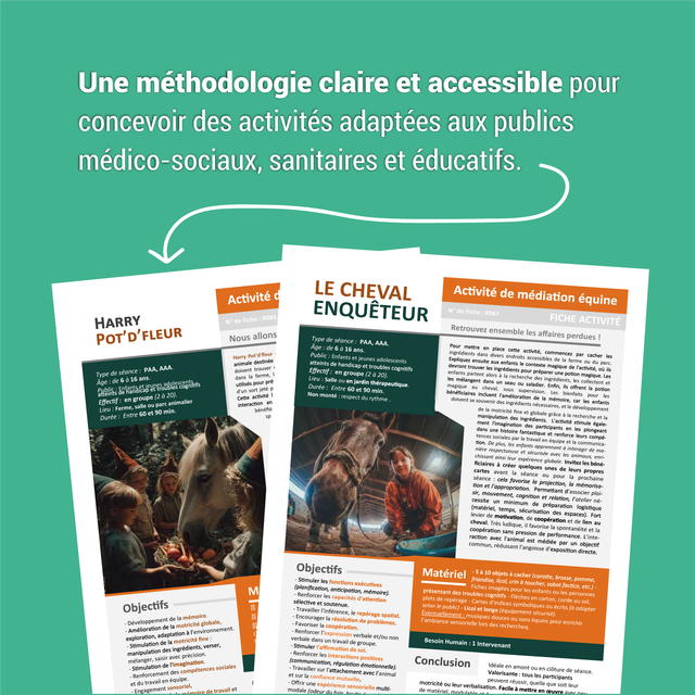 Nous sommes heureux de vous présenter notre 5 ème tome de livrets d’activités, dédié cette fois à la médiation équine. Après le succès rencontré par nos précédents tomes consacrés à l’art-zoothérapie, à la pédagogie assistée par l’animal et aux médiations thérapeutiques, nous poursuivons avec fierté et exigence notre engagement en faveur d’une médiation animale structurée, éthique et accessible. Ce nouveau livret a été pensé comme un véritable outil de terrain, au plus près des réalités professionnelles des intervenants en médiation par l'équidé, pour accompagner les intervenants dans la conception et l’animation de séances de médiation équine adaptées à des publics fragilisés, de tout âge. Il propose des repères méthodologiques clairs, des activités concrètes et des supports pratiques, afin de sécuriser les pratiques, soutenir la relation homme–équidé et donner du sens à chaque intervention. 🐴